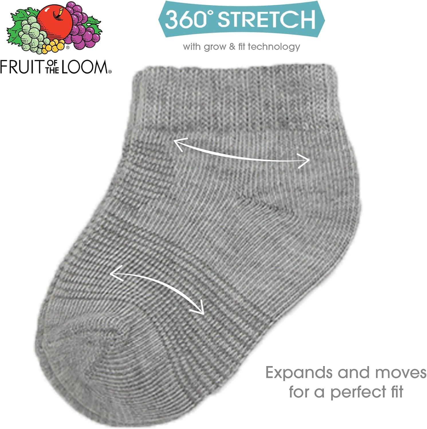 Fruit of the Loom Baby 22-Pack Grow & Fit Flex Zones Low Cut Stretch Socks – Unisex, Girls, Boys(Grey)