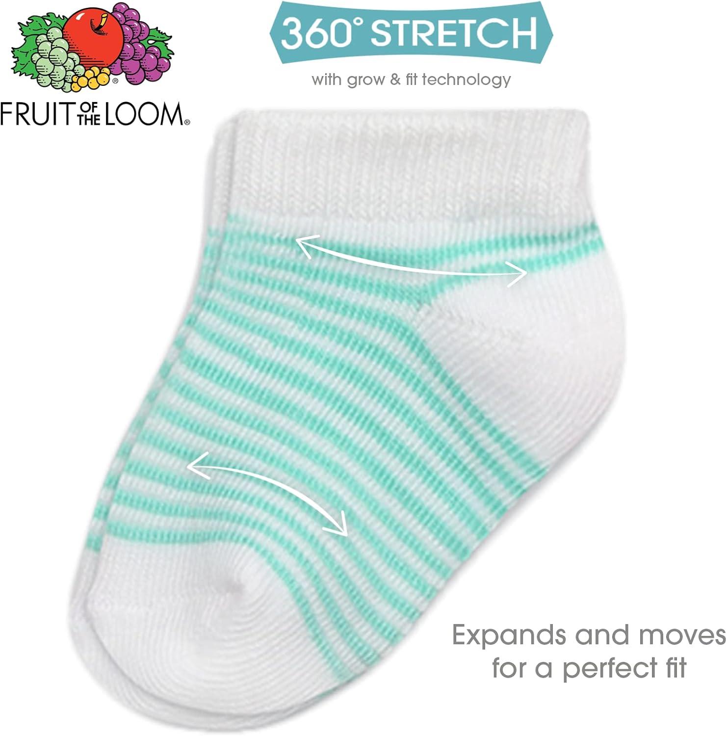 Fruit of the Loom Baby 22-Pack Grow & Fit Flex Zones Low Cut Stretch Socks – Unisex, Girls, Boys(White)