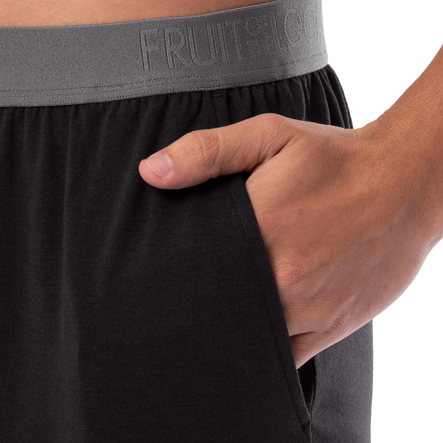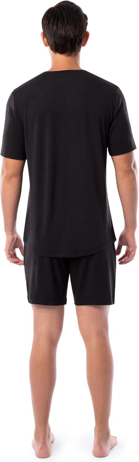 Fruit of the Loom mens 360 Stretch Short Sleeve V-neck Top and Short Sleep Pajama Set(Black)