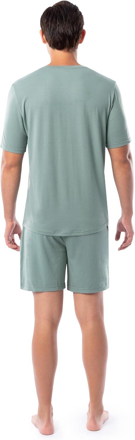 Fruit of the Loom mens 360 Stretch Short Sleeve V-neck Top and Short Sleep Pajama Set(Green)