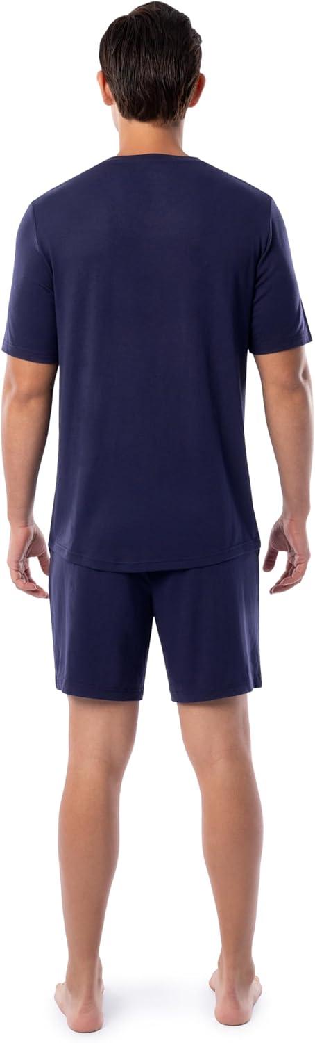 Fruit of the Loom mens 360 Stretch Short Sleeve V-neck Top and Short Sleep Pajama Set(Navy)
