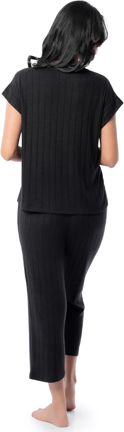 Fruit of the Loom womens Dolman Sleeve and Cropped Pant Sleep Set(Black)