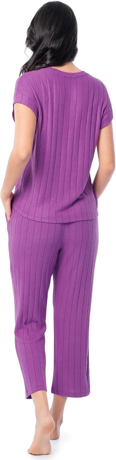Fruit of the Loom womens Dolman Sleeve and Cropped Pant Sleep Set(Fuchsia)