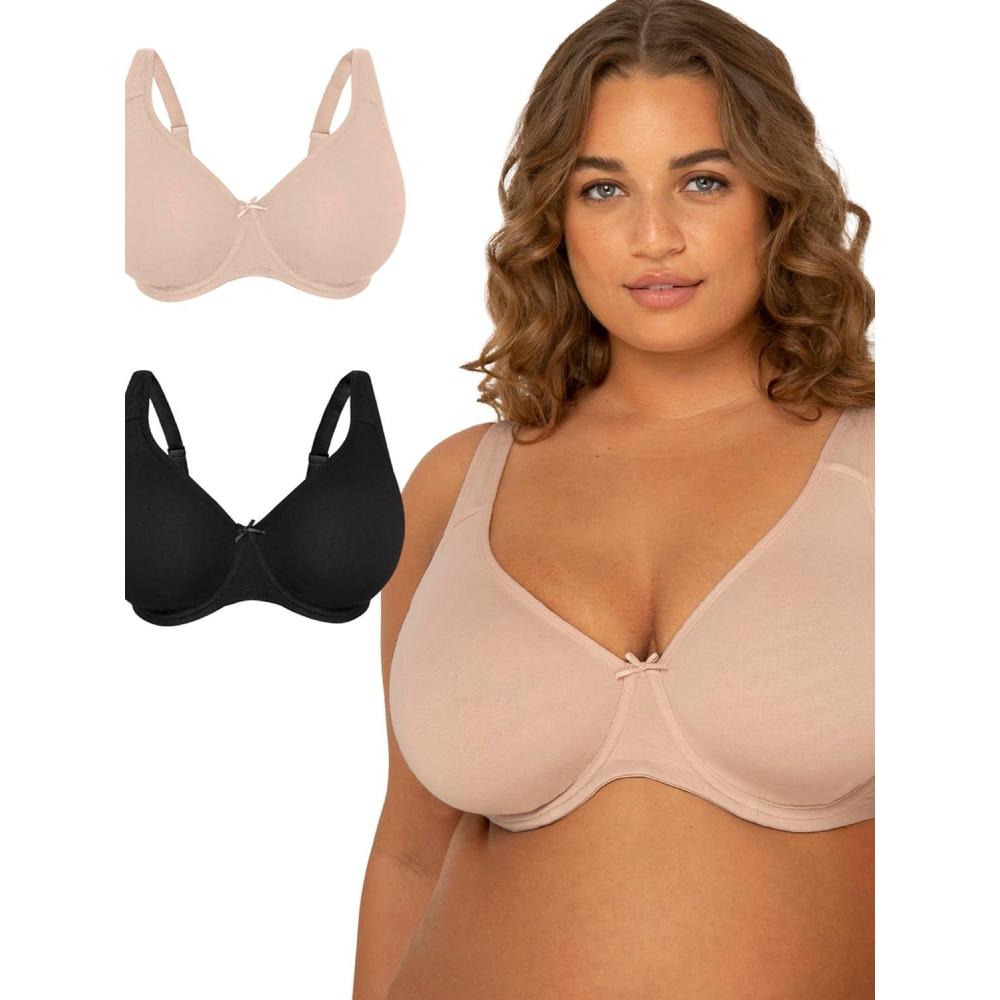 Fit For Me By Fruit of the Loom Women’s Plus Size Cotton Unlined Underwire Bra-Pinch-Free Straps – Side and Back Smoothing(Heather Grey/Black Hue)
