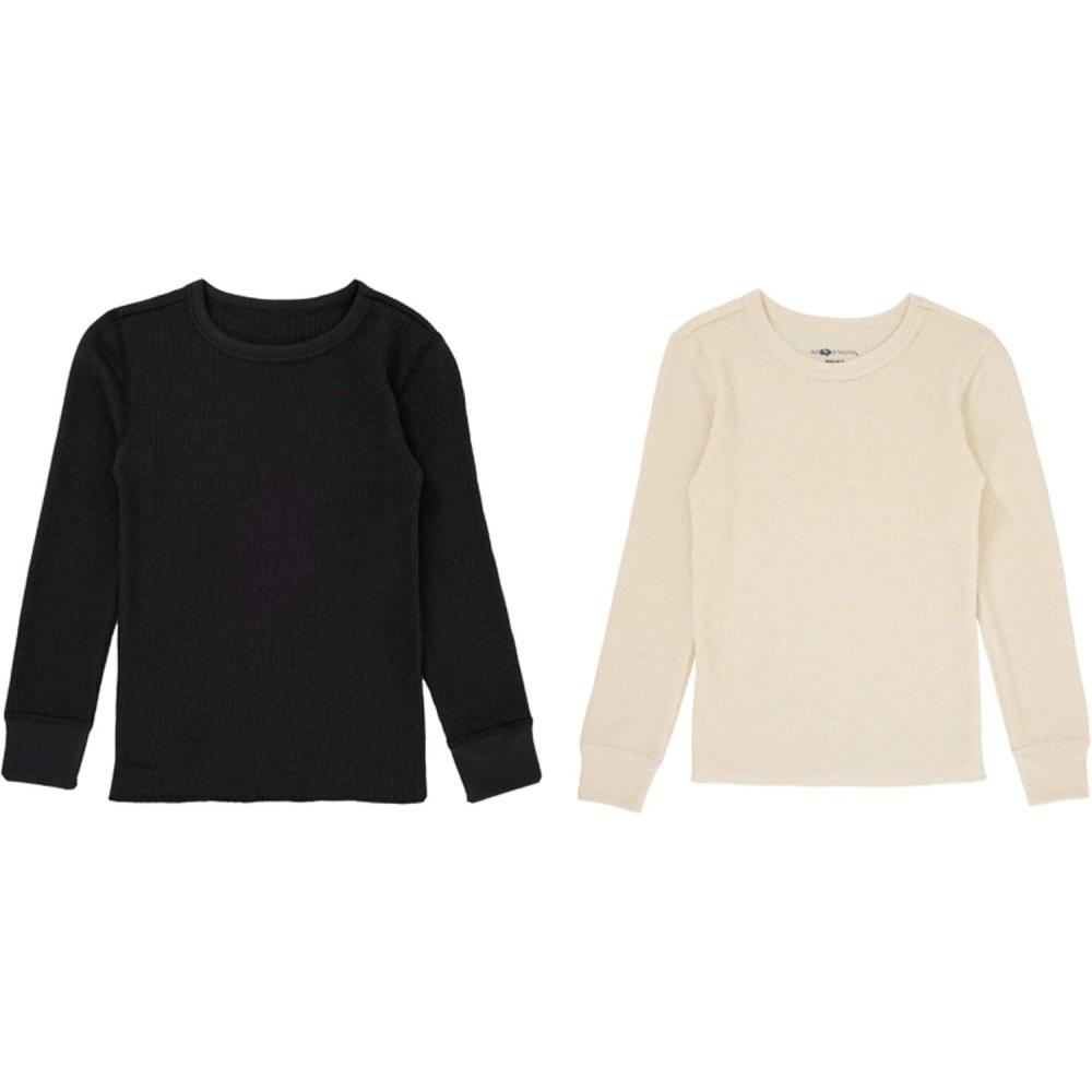 Fruit of the Loom Boys Premium 2-Pack Thermal Waffle Crew Top(Black/Natural)