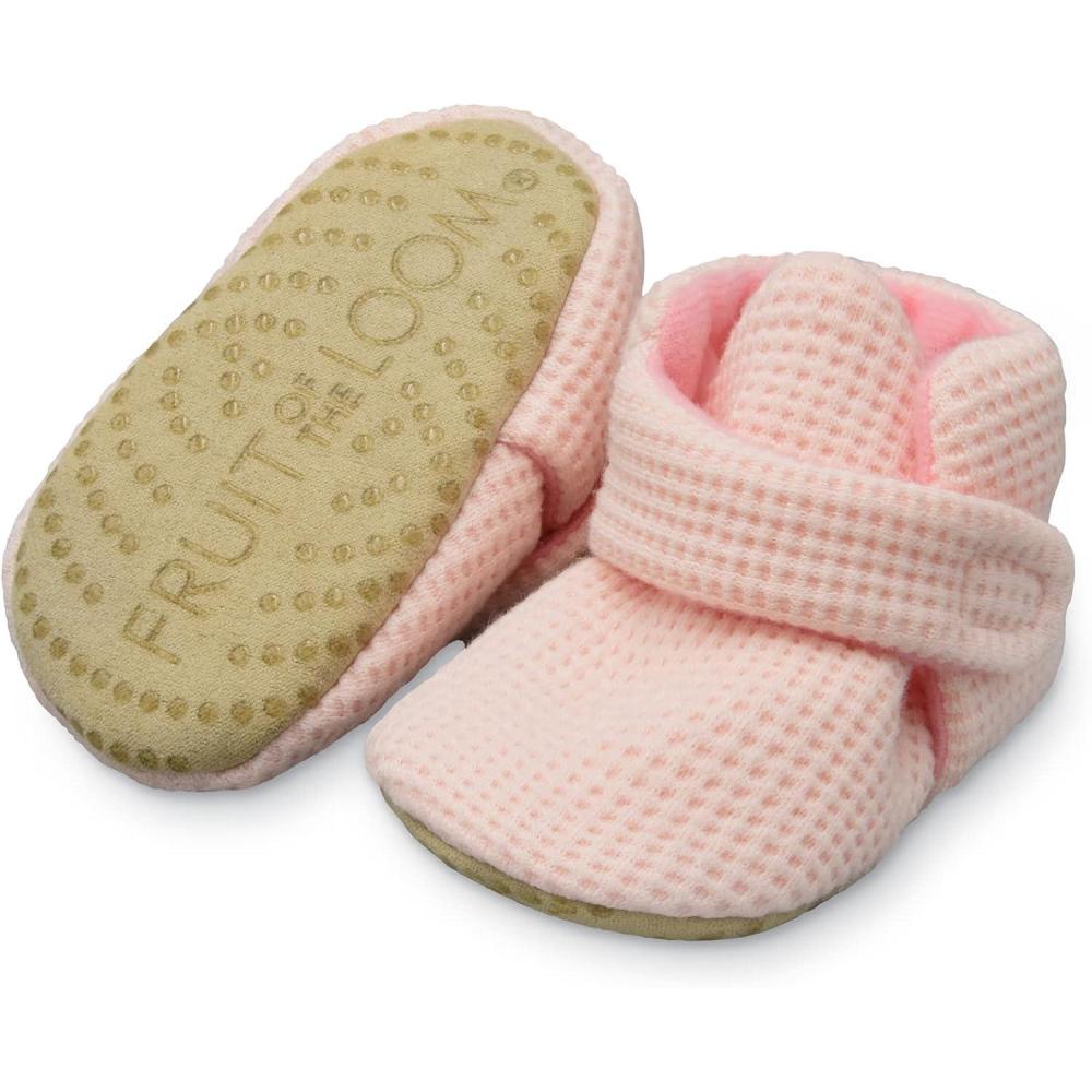Fruit of the Loom Cozy Thermal Wrap Booties with Non-slip Grips for Baby Girls, Boys, Unisex -(Pink Waffle)