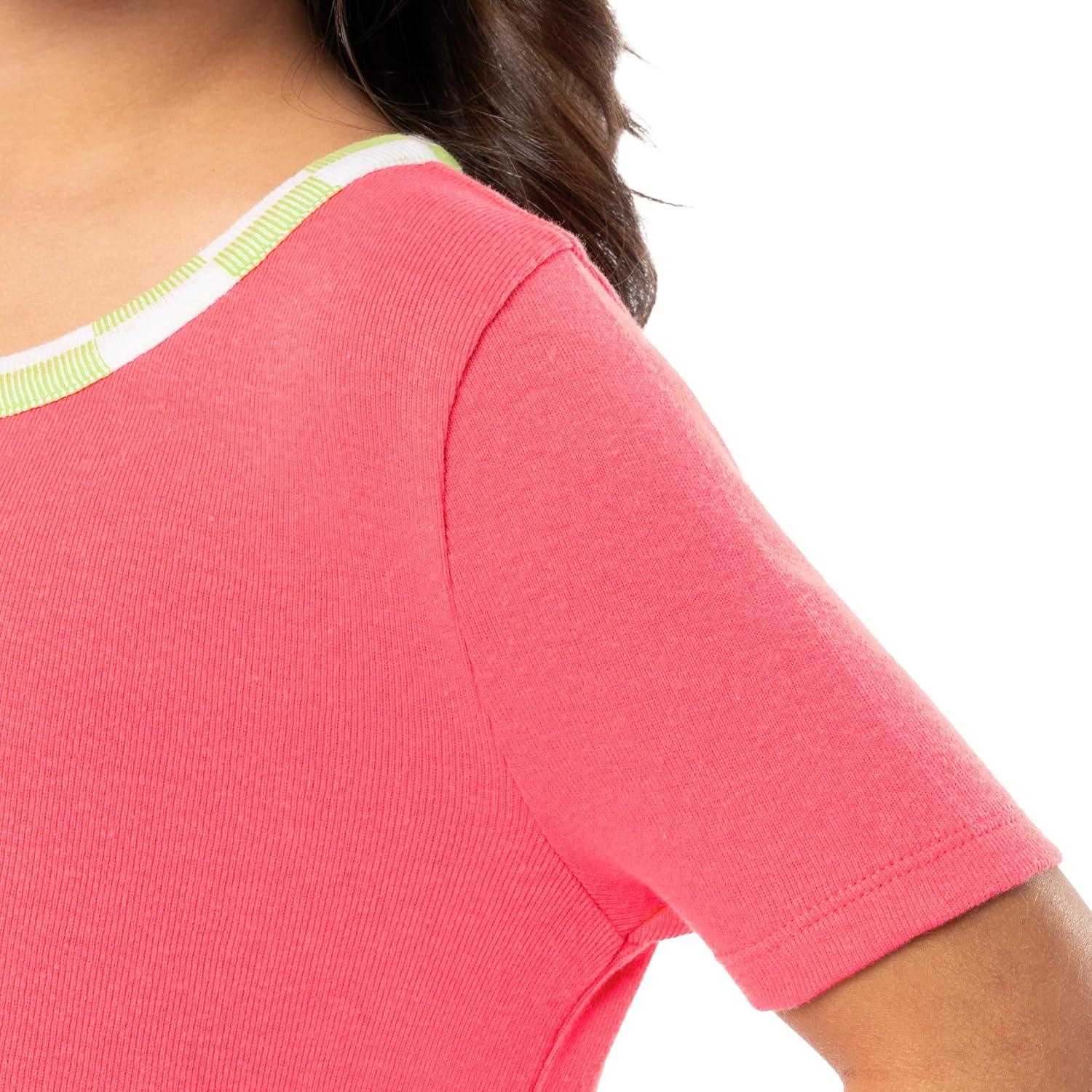 Fruit of the Loom Energize Girl’s Snug Fit 4-piece Pajama Sleep Set(Coral/Spring Green)