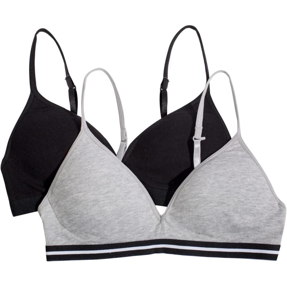 Fruit of the Loom Girls’ 2-Pack Seamless Soft Cup Bras – Lightweight & Gentle Support(Heather Grey/Black Hue)
