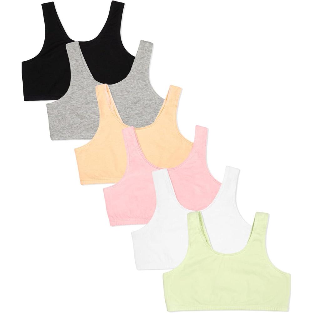 Fruit of the Loom Girls’ Multi Cotton Built-Up Stretch Sports Bra Available in 6 Packs(Lentil/Mango/Pink Camo/Grey Heather/White/Black)