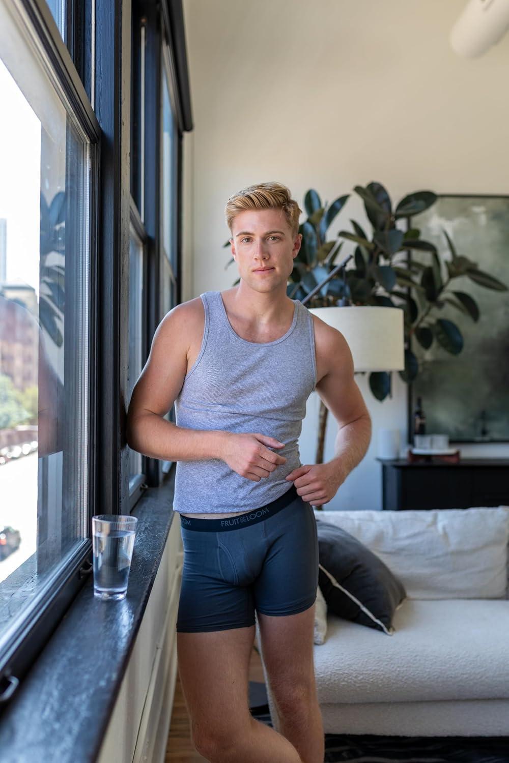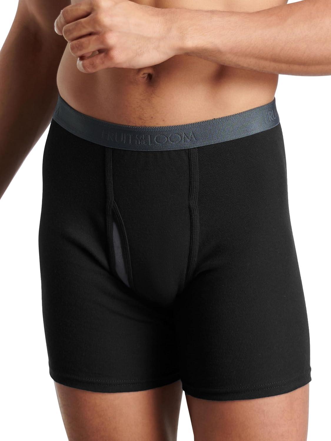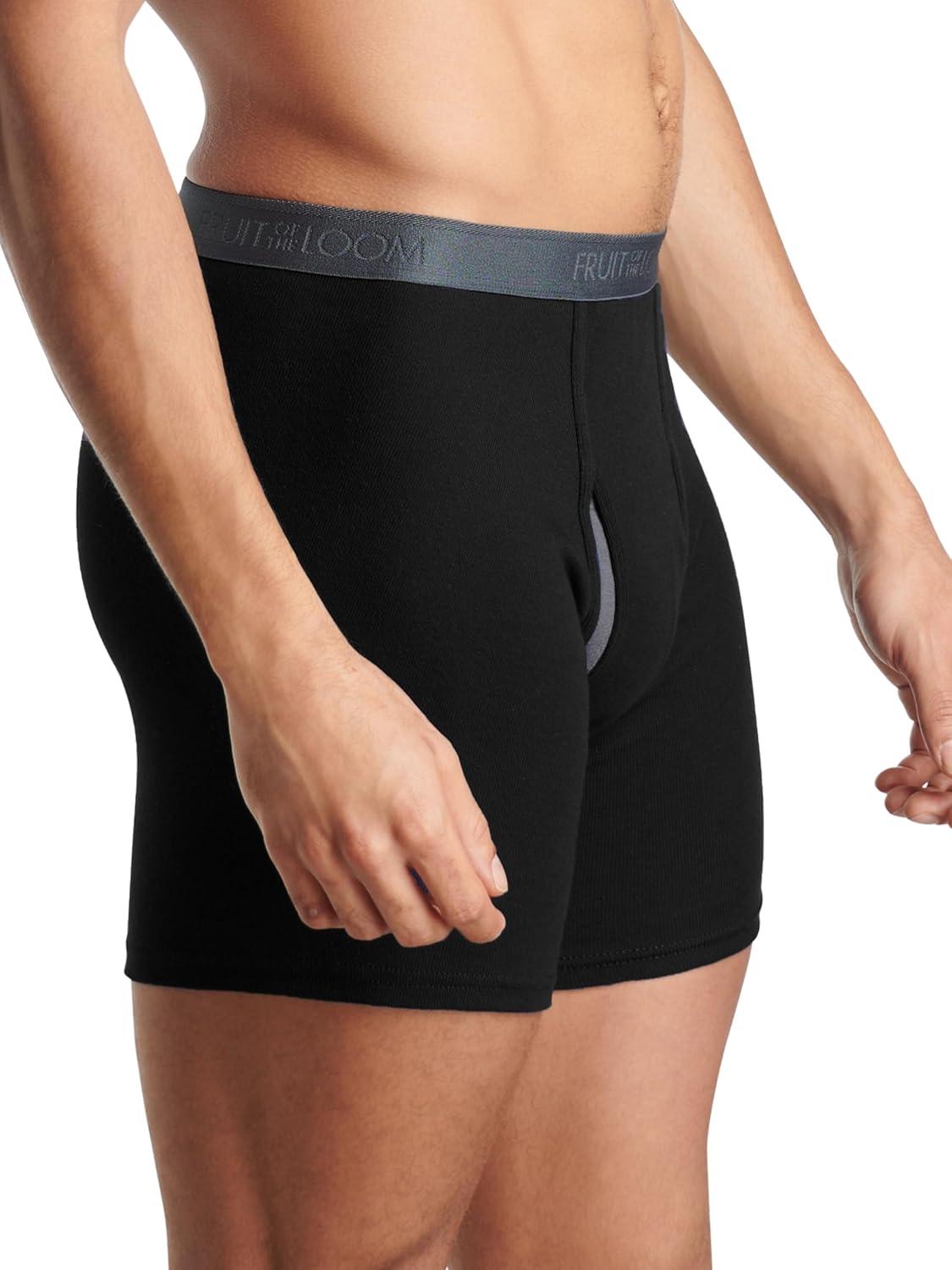 Fruit of the Loom mens 4-way Stretch Boxer Briefs | Lightweight & Moisture Wicking Underwear | Long Leg, Regular Leg & Trunk(Regular Leg – Cotton Stretch – Black/Grey)