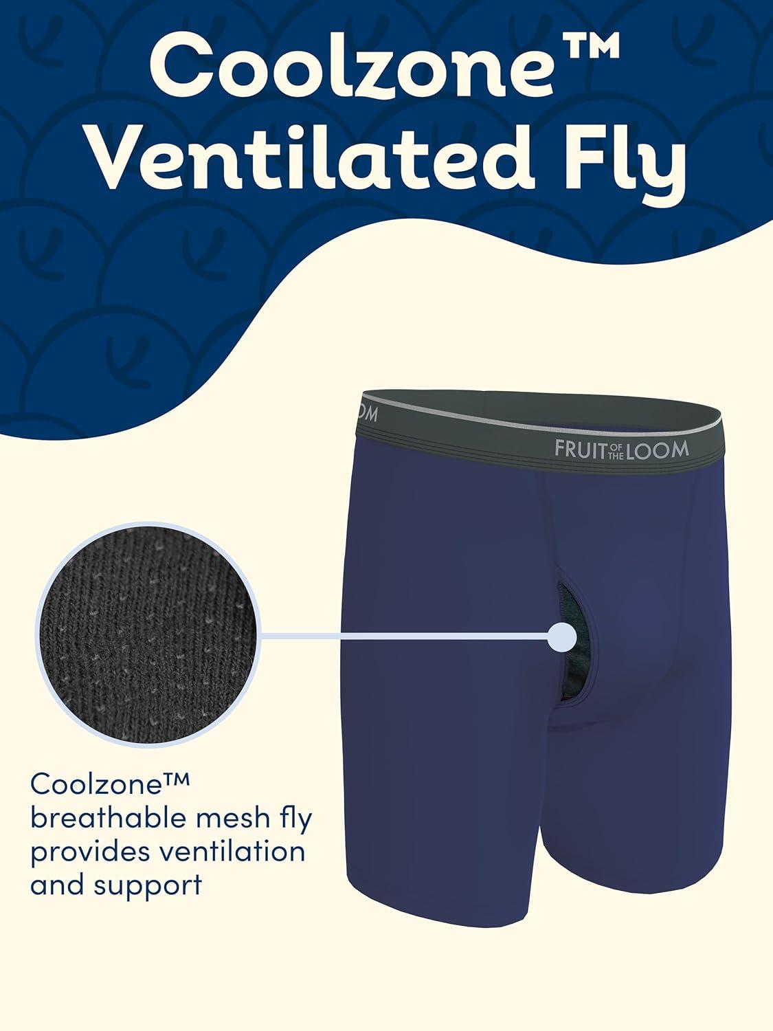 The Fruit of the Loom® cotton boxer briefs are better than ever! We've added EverSoft® fabric that provides premium softness wash after wash. This collection of black and grey CoolZone® men's boxer briefs are designed with a mesh fly that provides ventilation and support right where you need it most. With legs that don't ride up, and strategically placed breathable mesh, our CoolZone® boxer briefs will keep you cool and comfortable all day. Each pair is carefully crafted and includes moisture wicking benefits designed to help keep you dry and fresh.