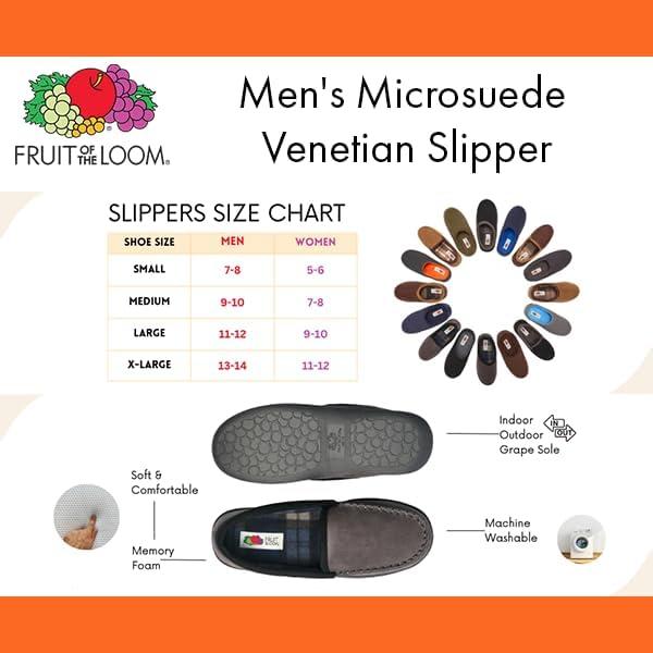 Fruit of the Loom Men’s Memory Foam House Slippers Indoor Outdoor – Microsuede Venetian Cozy Warm Men’s Slippers Plush House Shoes, Sizes 7-14(Grey)