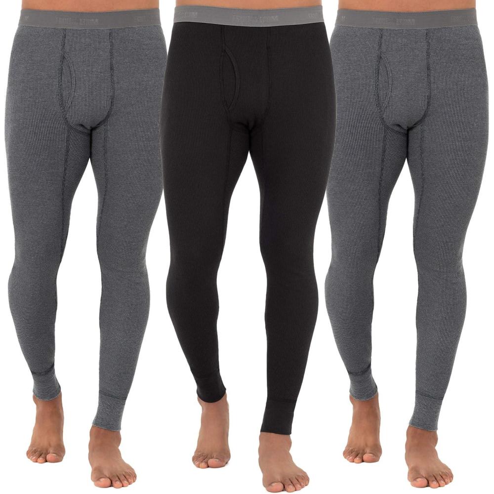 Fruit of the Loom Mens Recycled Premium Waffle Thermal Underwear Long Johns Bottom (1, 2, 3, and 4 Packs)(Greystone Heather/Greystone Heather/Black)