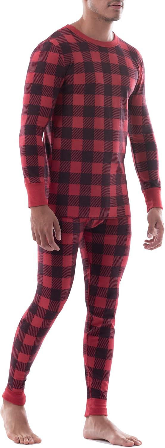 Fruit of the Loom Men’s Recycled Waffle Thermal Underwear Set (Top and Bottom)(Buffalo Plaid)