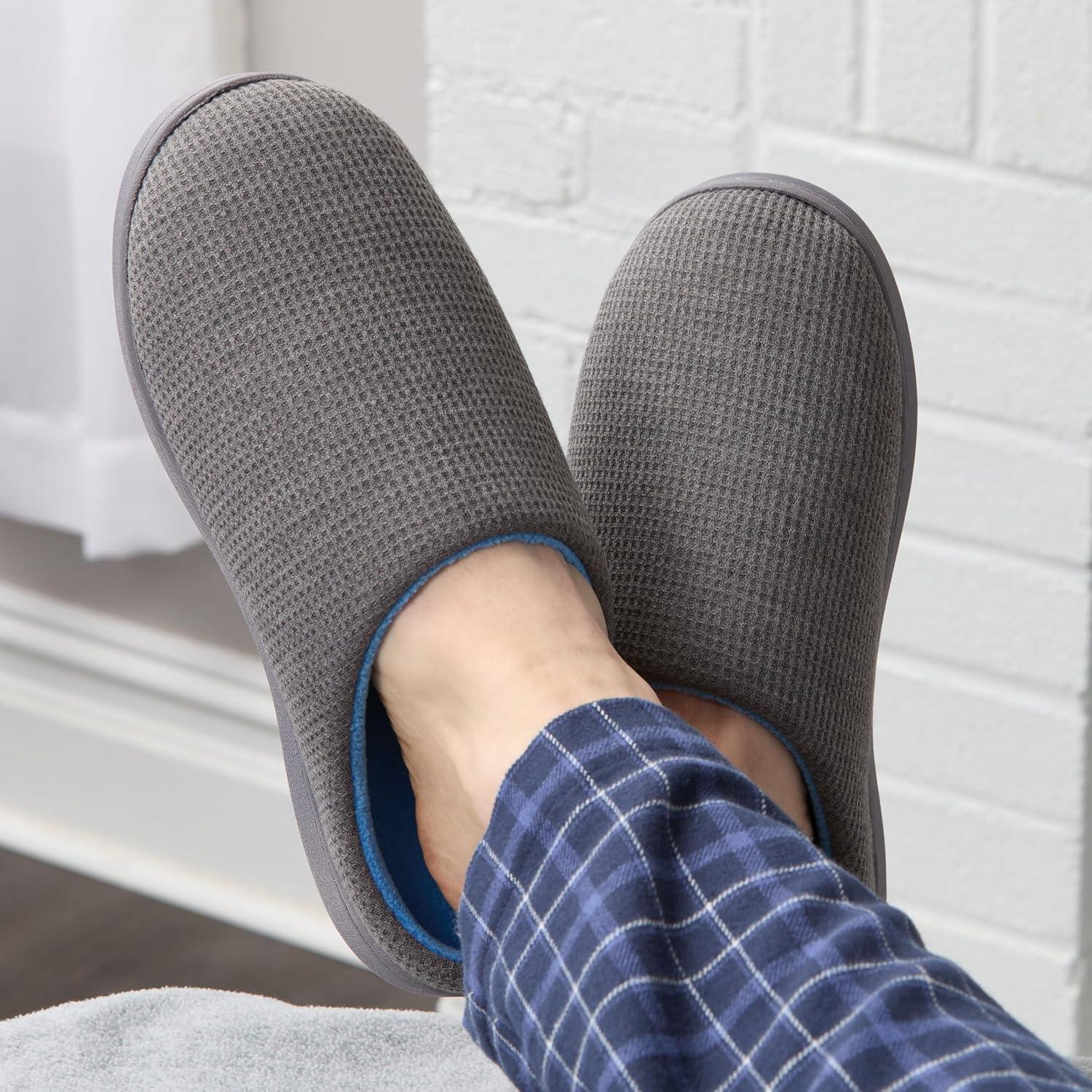Fruit of the Loom Men’s Ribbed Jersey Clog Slippers – Memory Foam Sole – Indoor/Outdoor, Pantuflas Machine Washable(Grey)