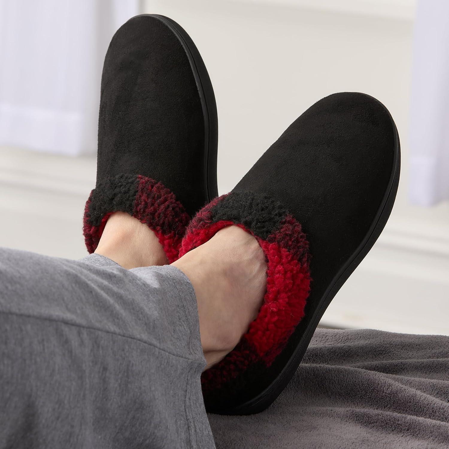 Fruit of the Loom Men’s Slipper, Indoor/Outdoor, Microsuede Clog(Black)