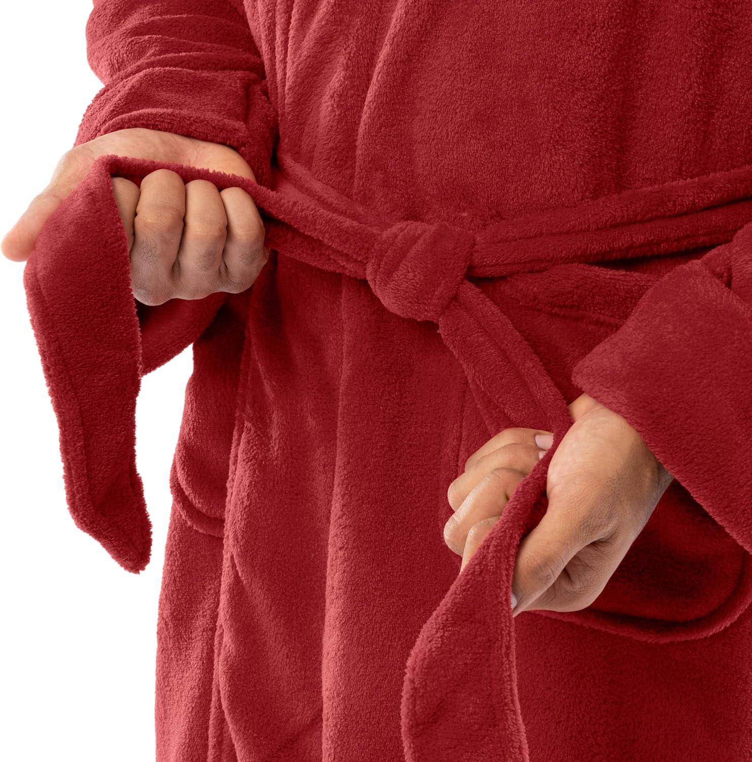 Fruit of the Loom mens Solid Plush Fleece Robe(Red)