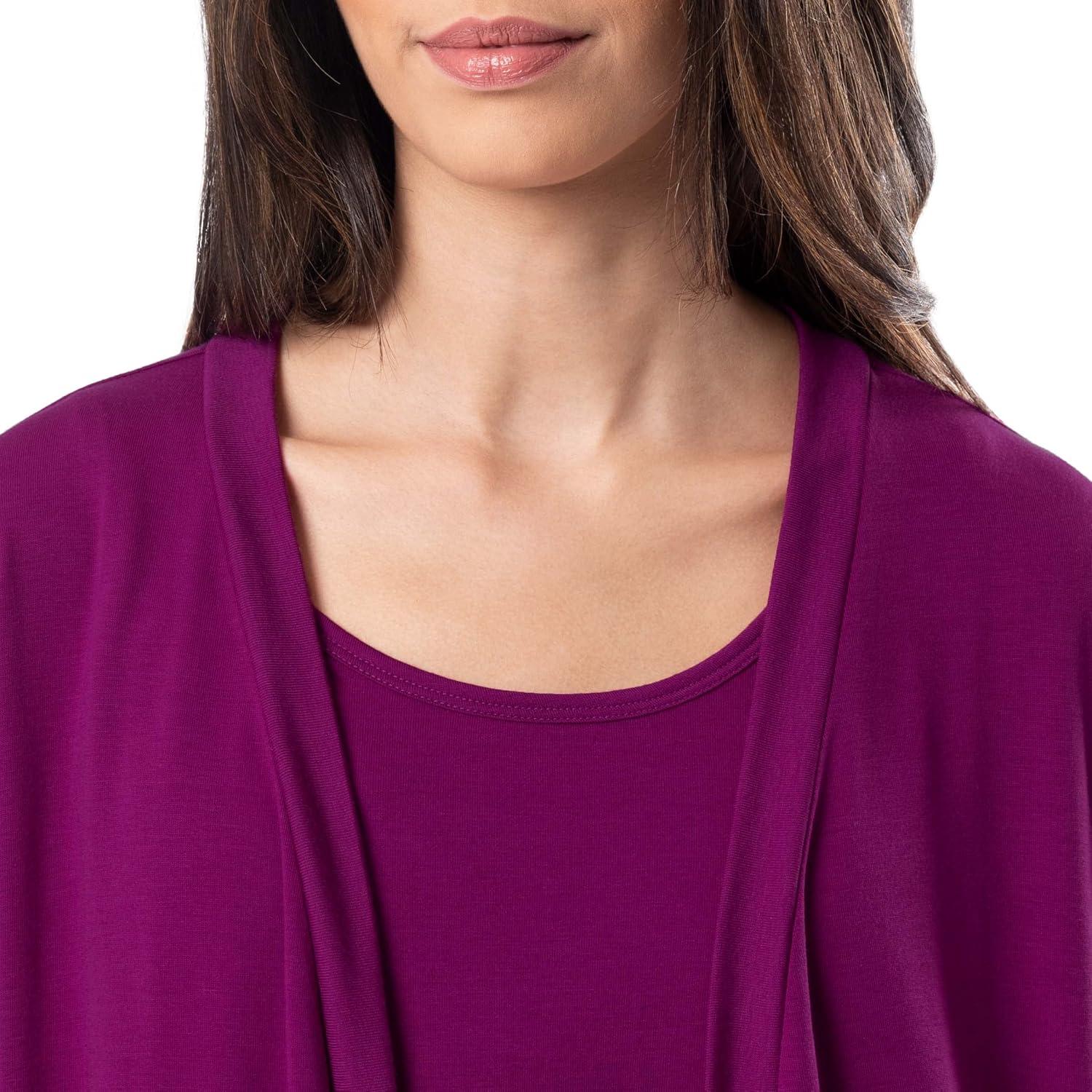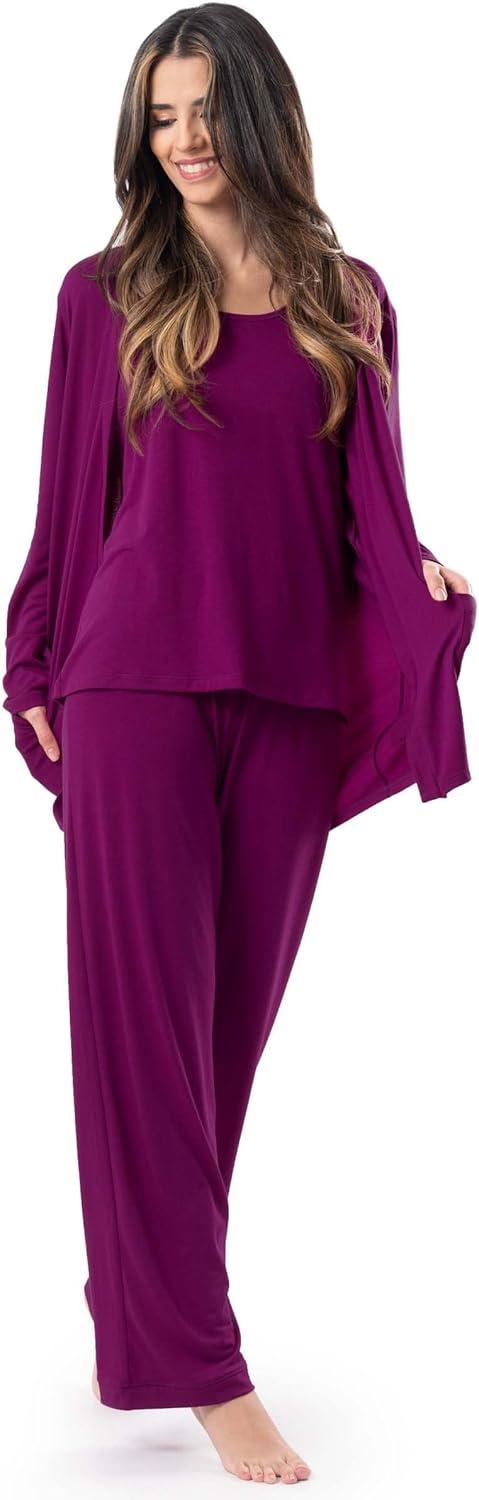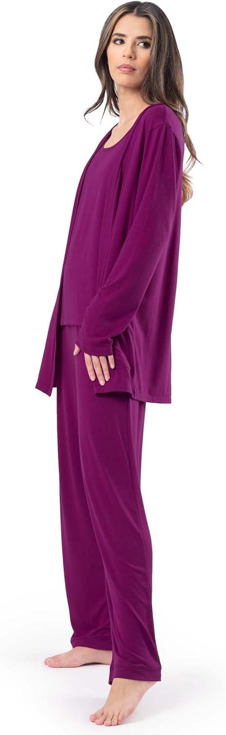 Fruit of the Loom womens Breathable Tank Top, Pant, and Cardigan Sleep Set(Boysenberry)