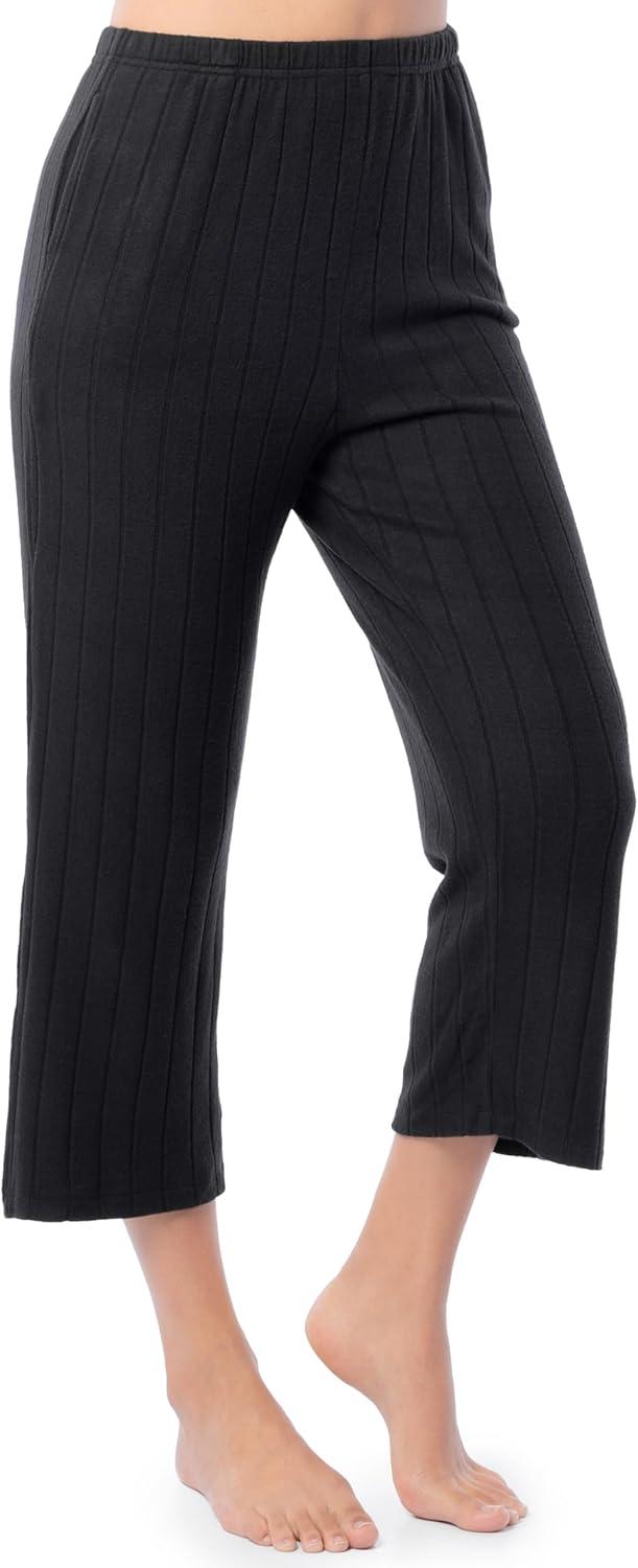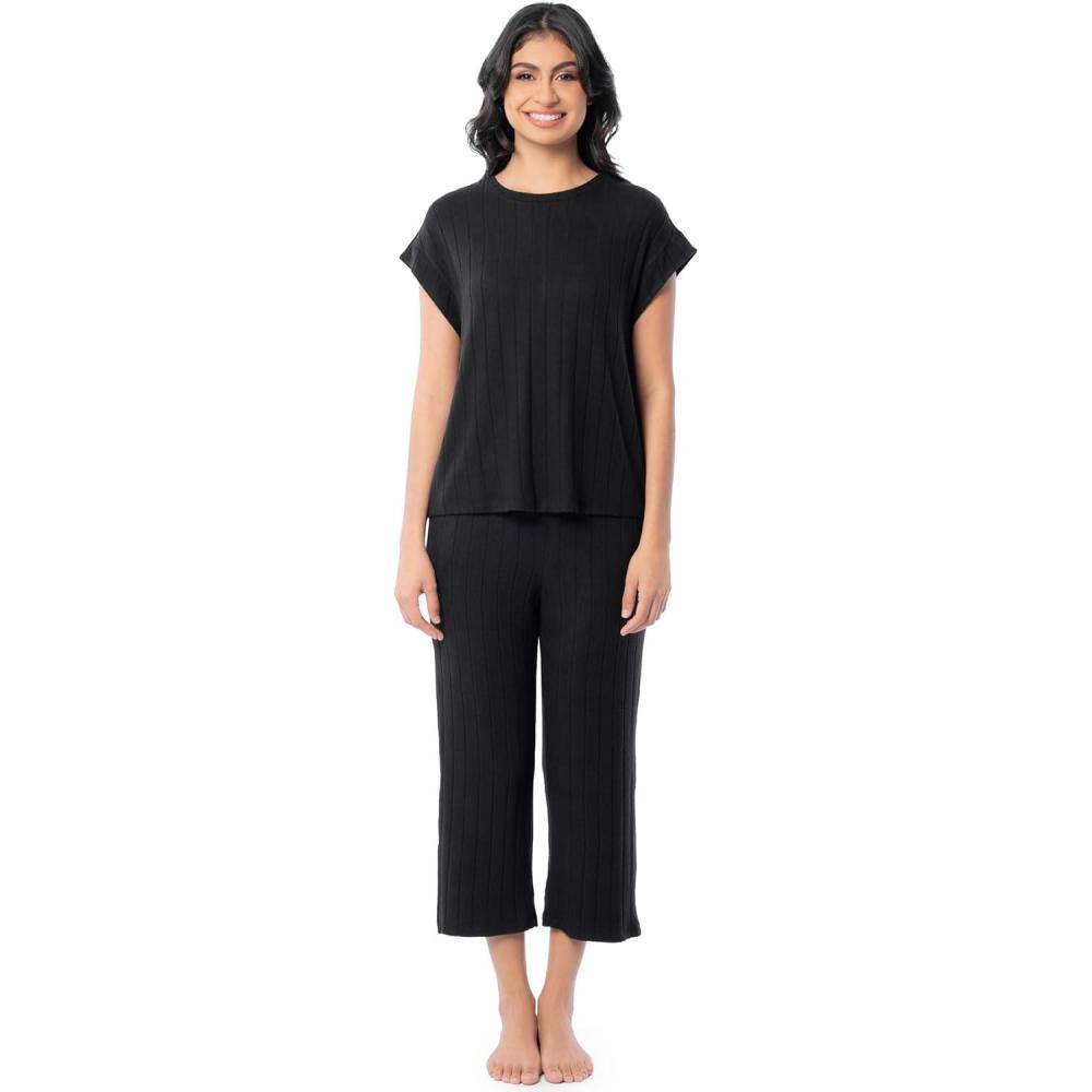 Fruit of the Loom womens Dolman Sleeve and Cropped Pant Sleep Set(Black)
