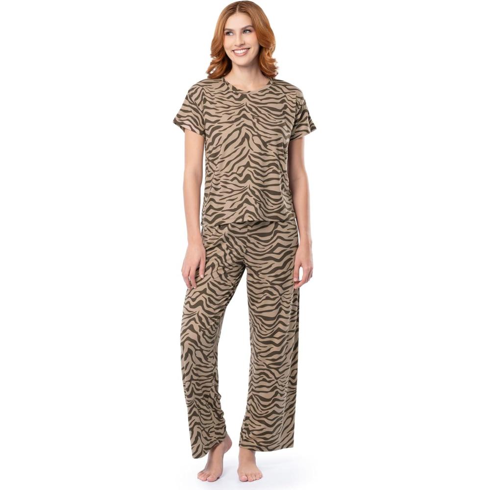 Fruit of the Loom Women’s Drop Shoulder Tee and Convertible Waist Sleep Set(Zebra)