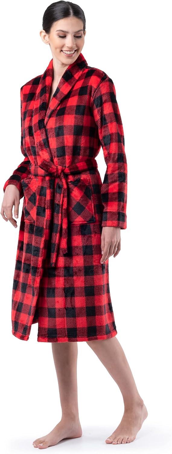 Fruit of the Loom Womens Fleece Robe(Buffalo Check)