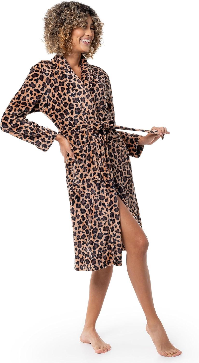 Fruit of the Loom Womens Fleece Robe(Cheetah)