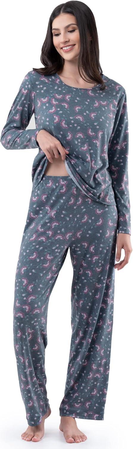 Fruit of the Loom Women’s Long Sleeve Tee and Pant 2 Piece Sleep Set(Floral Print)