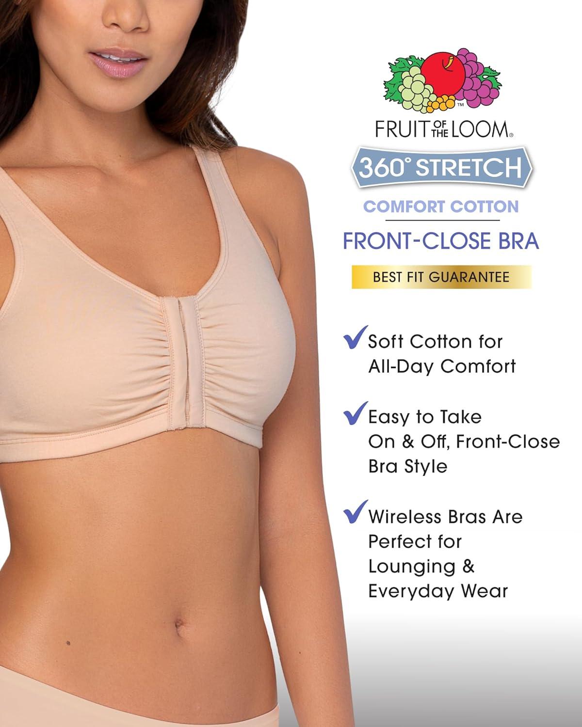 Fruit of the Loom Women’s Multi-Pack Front Closure Cotton Bra(Black Hue/Black Hue)