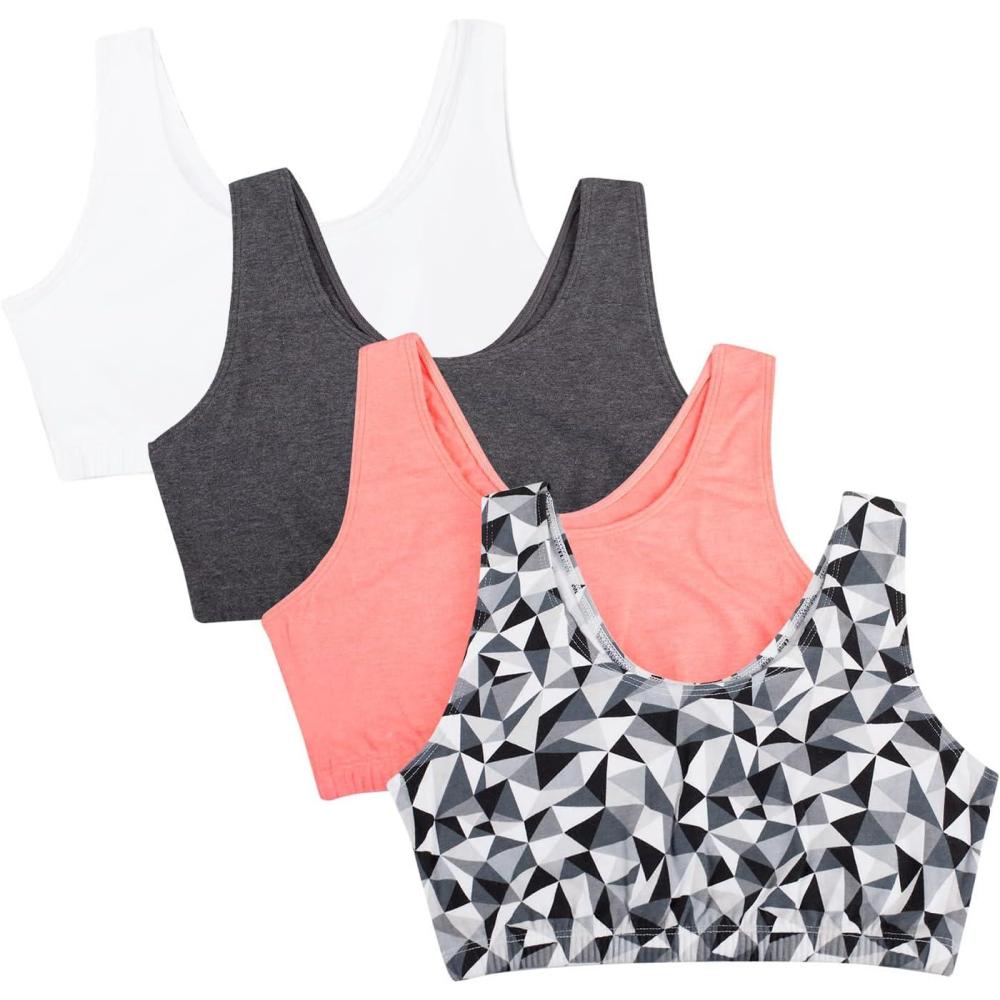 Fruit of the Loom Women’s Multi-Pack Tank Top Style Sports Bra(Kaleidescope/Charcoal Heather/Punchy Peach/White)