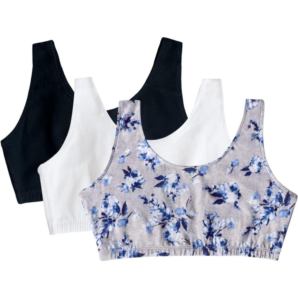Fruit of the Loom Women’s Multi-Pack Tank Top Style Sports Bra(Rose Impression Print/White/Blue)