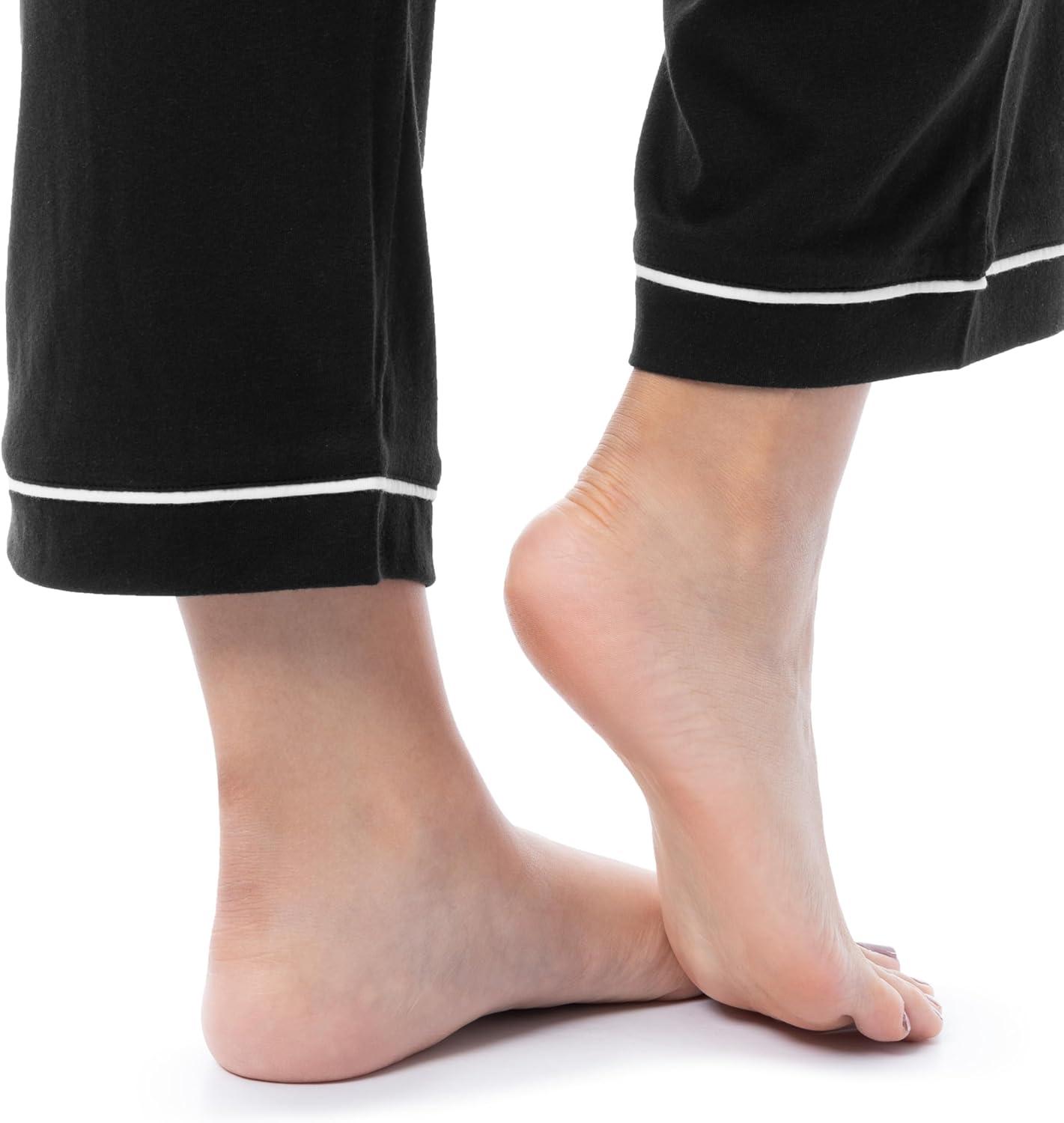 Unwind in ultimate comfort and timeless style with the Fruit of the Loom Women's Piped Button-Down Pajama Set. This two-piece set includes a button-front top with a convenient chest pocket and a relaxed, cropped wide-leg pant. Crafted for maximum comfort, the soft, breathable fabric ensures you stay cozy throughout the night, while the covered elastic waistband provides a secure yet flexible fit. Designed for a smooth, irritation-free experience, this pajama set is perfect for lounging at home or enjoying a peaceful night’s sleep.