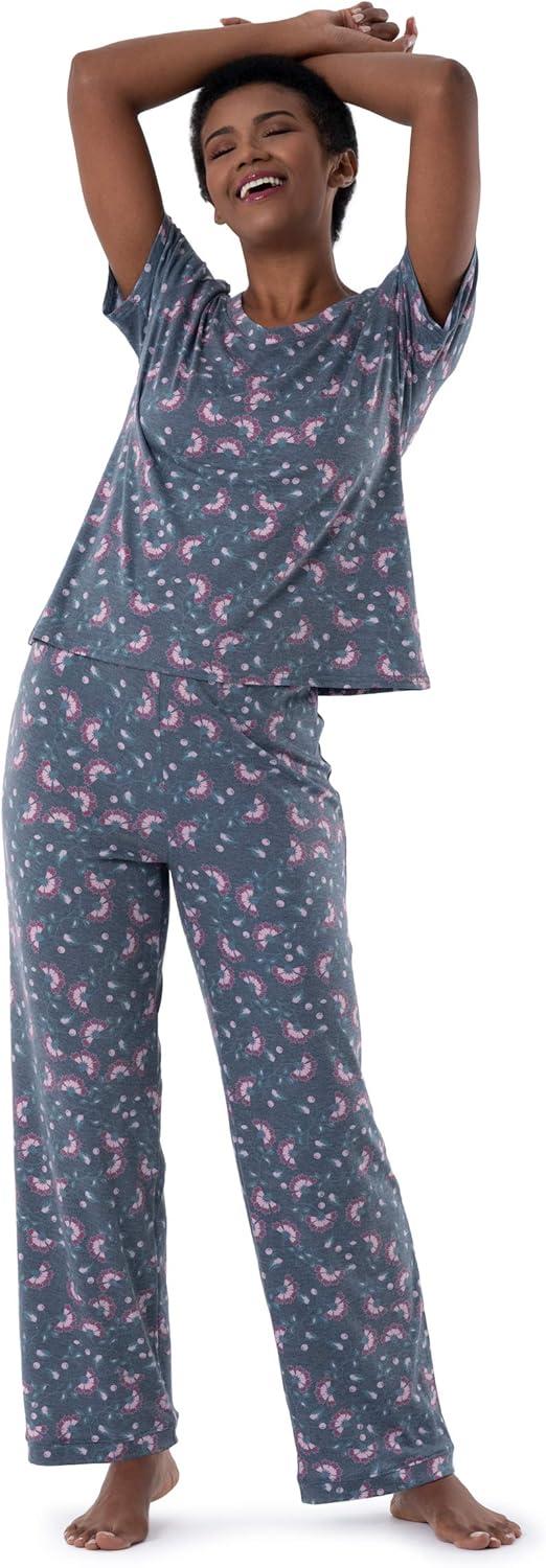 Fruit of the Loom womens Short Sleeve Tee and Pant 2 Piece Sleep Set(Floral)