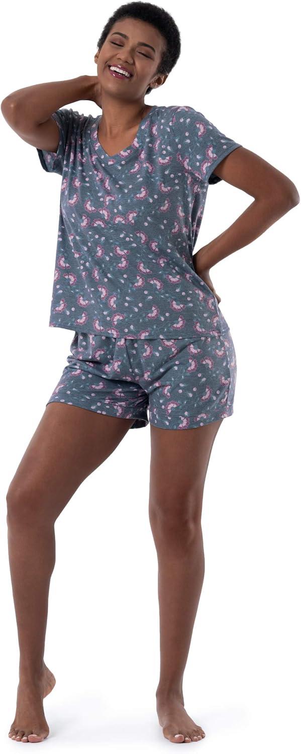 Fruit of the Loom Women’s Short Sleeve Tee and Short 2 Piece Sleep Set(Floral)