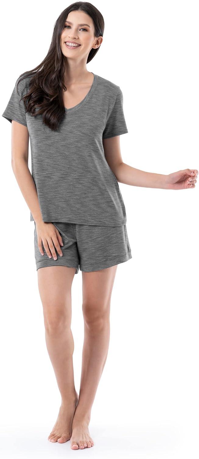 Fruit of the Loom Women’s Short Sleeve Tee and Short 2 Piece Sleep Set(Heather Grey)