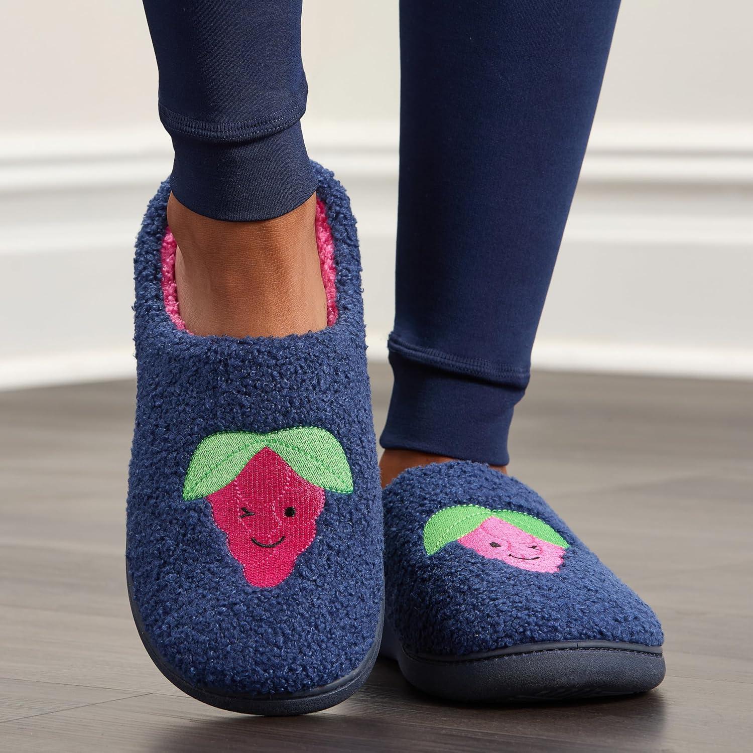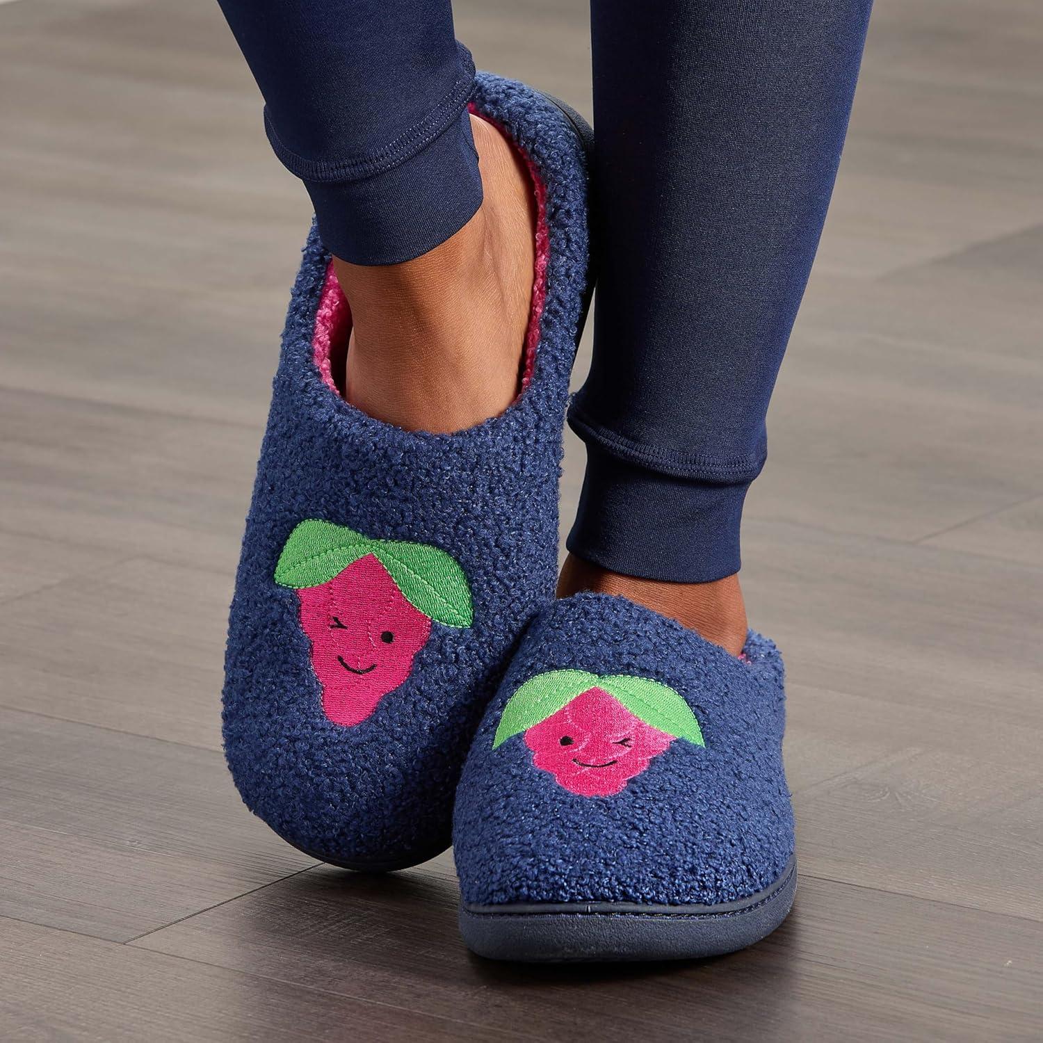 Fruit of the Loom Women’s Slipper, Sherpa Grape Design Clog, Memory Foam, Navy, X-Large(Navy)