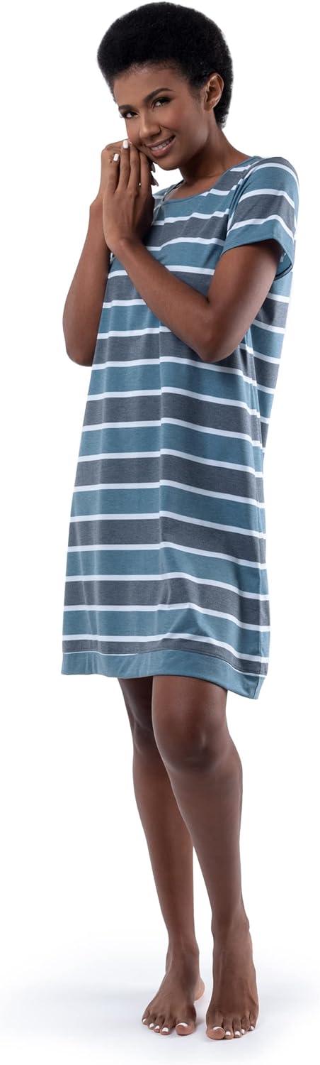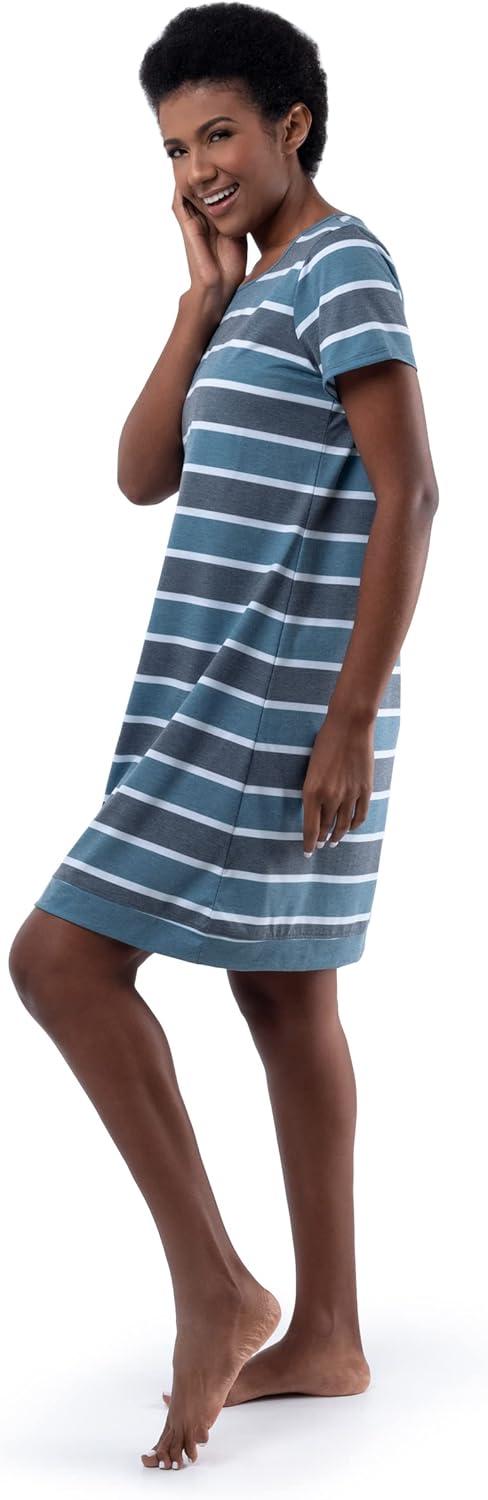 Fruit of the Loom womens Super Soft and Breathable Sleep Shirt(Blue Stripe)
