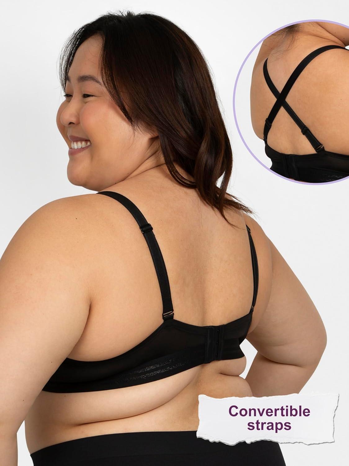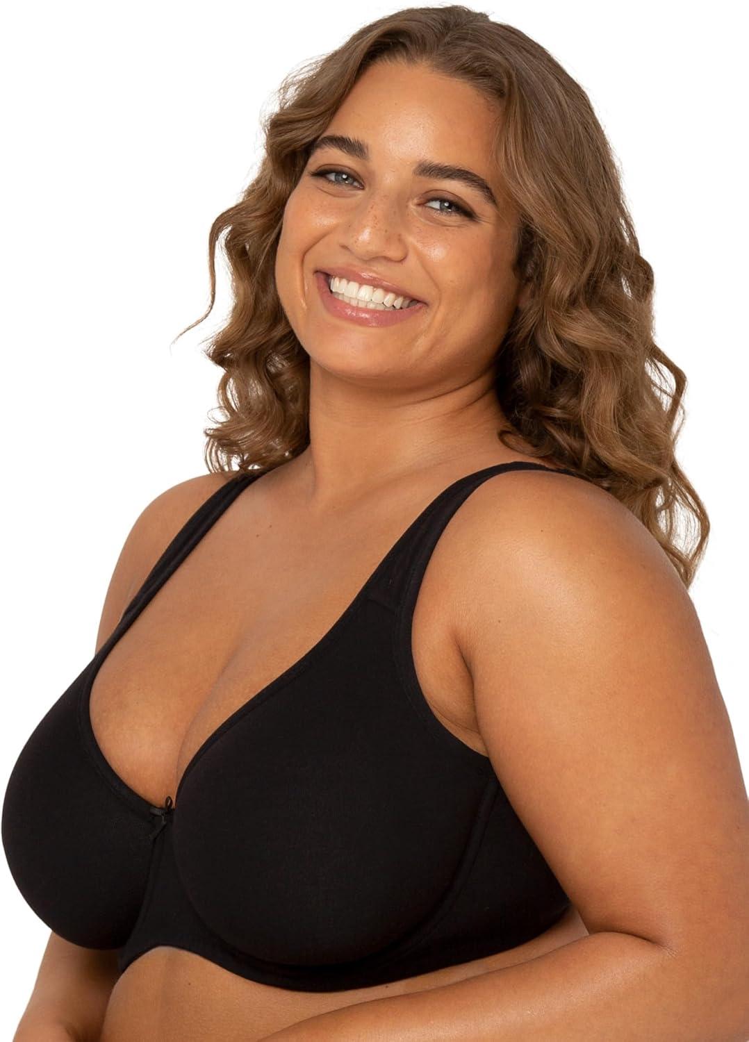 Fit For Me By Fruit of the Loom Women’s Plus Size Cotton Unlined Underwire Bra-Pinch-Free Straps – Side and Back Smoothing(Black Hue)