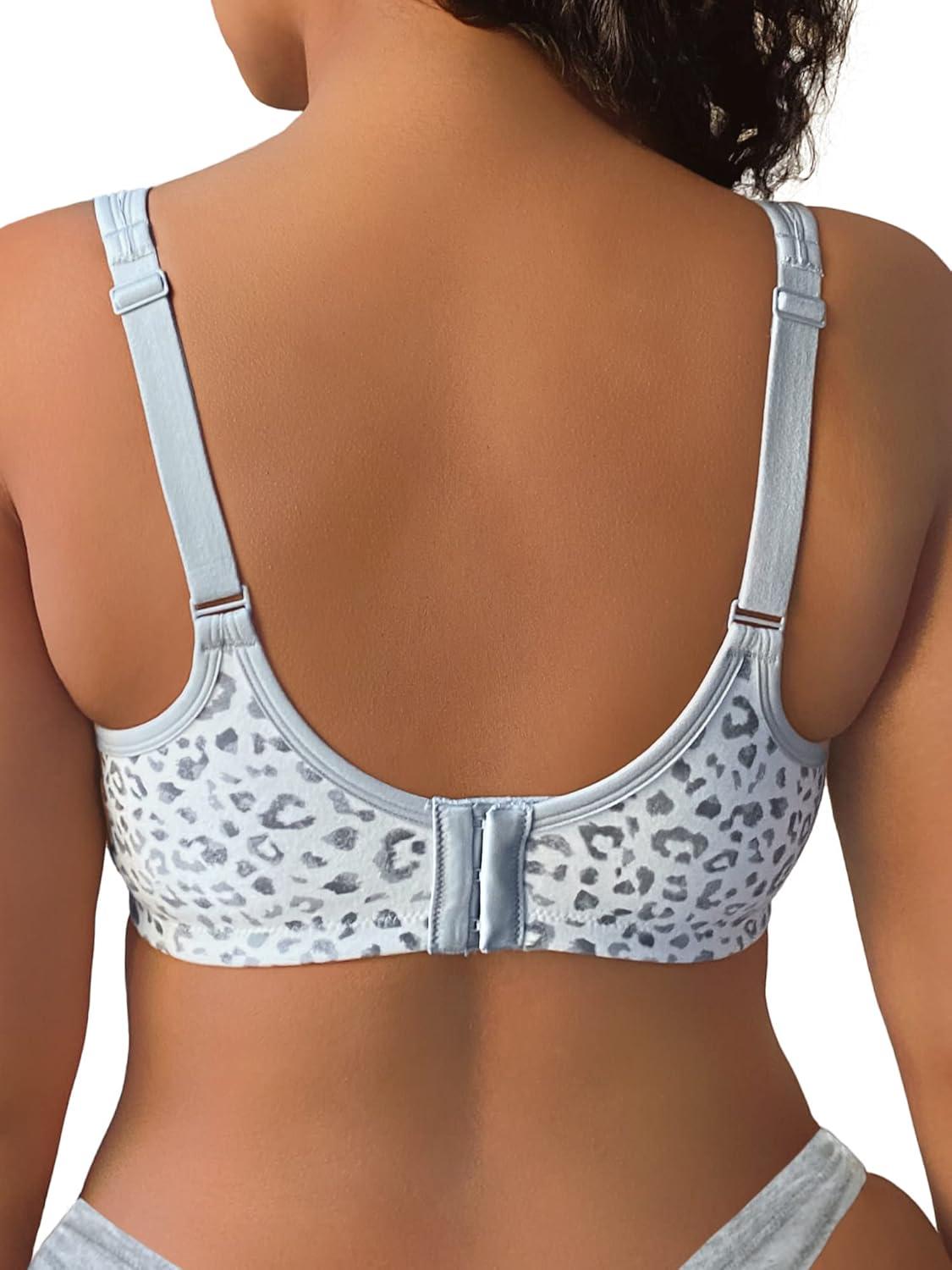Fit For Me By Fruit of the Loom Women’s Plus Size Cotton Unlined Underwire Bra-Pinch-Free Straps – Side and Back Smoothing(Leopard Smoke)