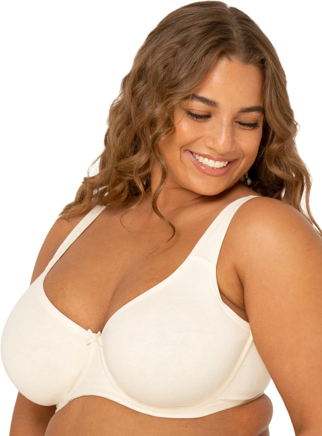 Fit For Me By Fruit of the Loom Women’s Plus Size Cotton Unlined Underwire Bra-Pinch-Free Straps – Side and Back Smoothing(Sand)