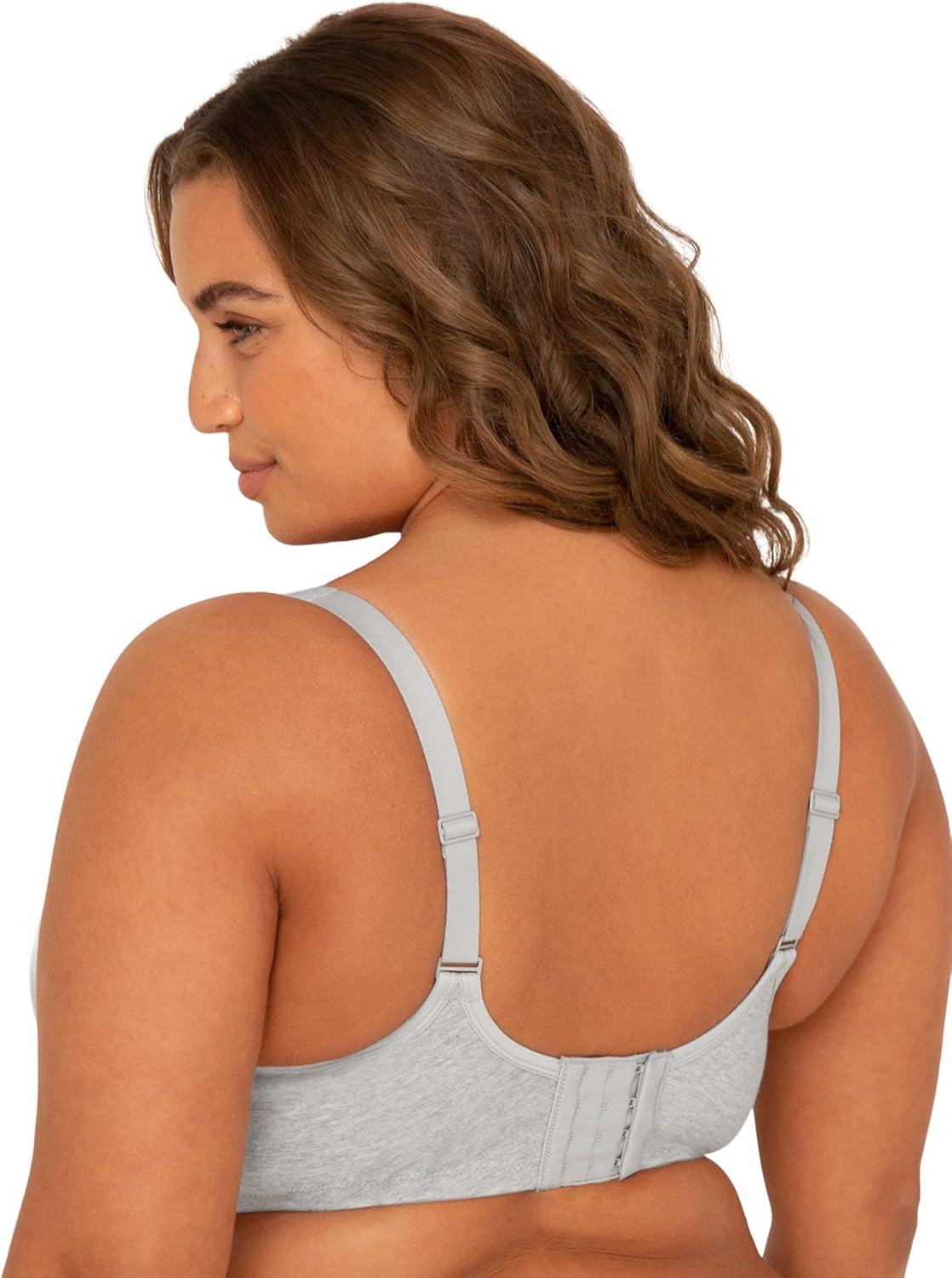 Fit For Me By Fruit of the Loom Women’s Plus Size Cotton Unlined Underwire Bra-Pinch-Free Straps – Side and Back Smoothing(Heather Grey)