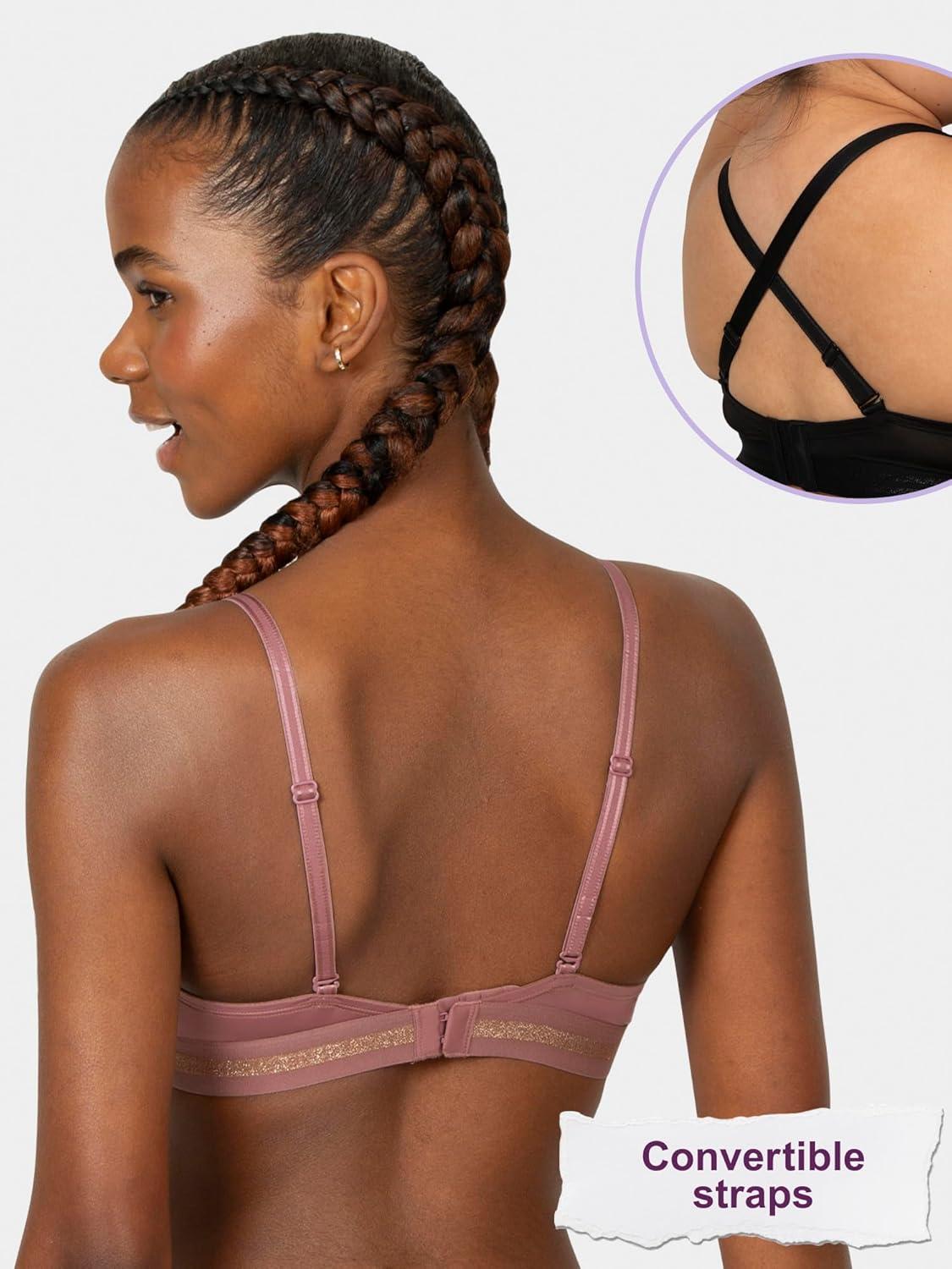 Fruit of the Loom A Fresh Collection FOMO Free 2-Pack Women’s Triangle Bralettes – Modern Comfort & Sleek Design(Rose Shadow/Black Hue)