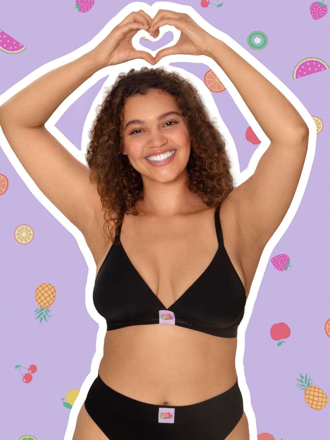 Fruit of the Loom A Fresh Collection FOMO Free 2-Pack Women’s Triangle Bralettes – Modern Comfort & Sleek Design(Premium Plum/Black Hue)
