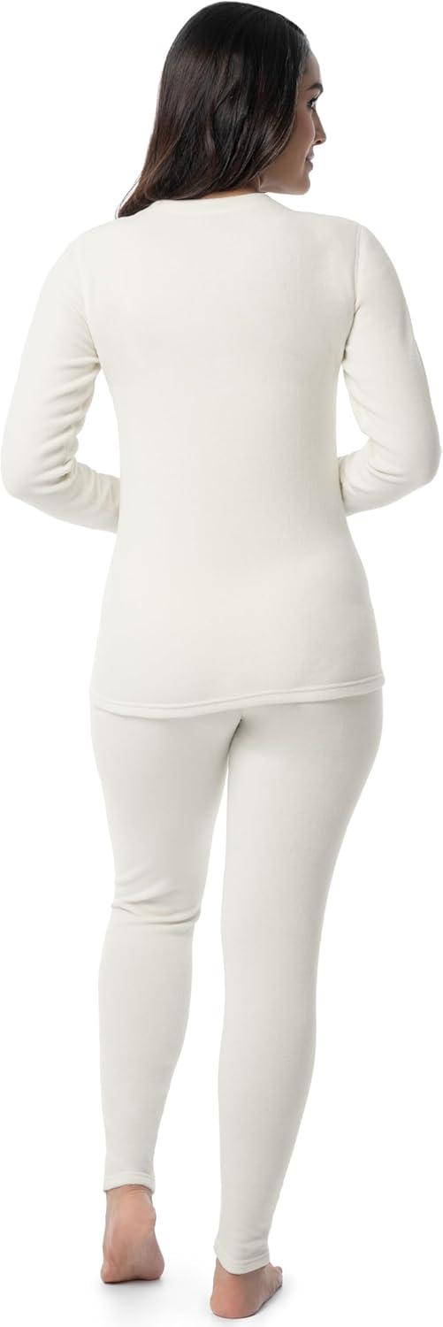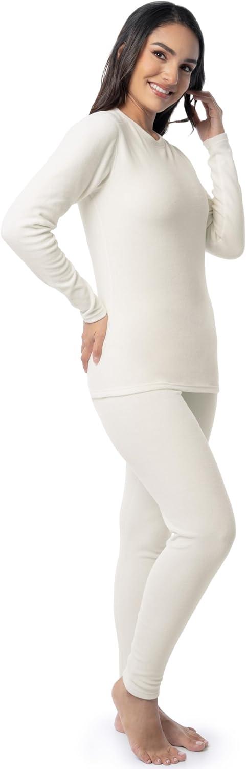 Fruit of the Loom womens Stretch Fleece Lined Thermal Long Johns Underwear Set(Cream)