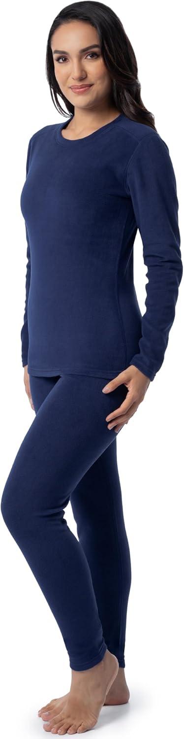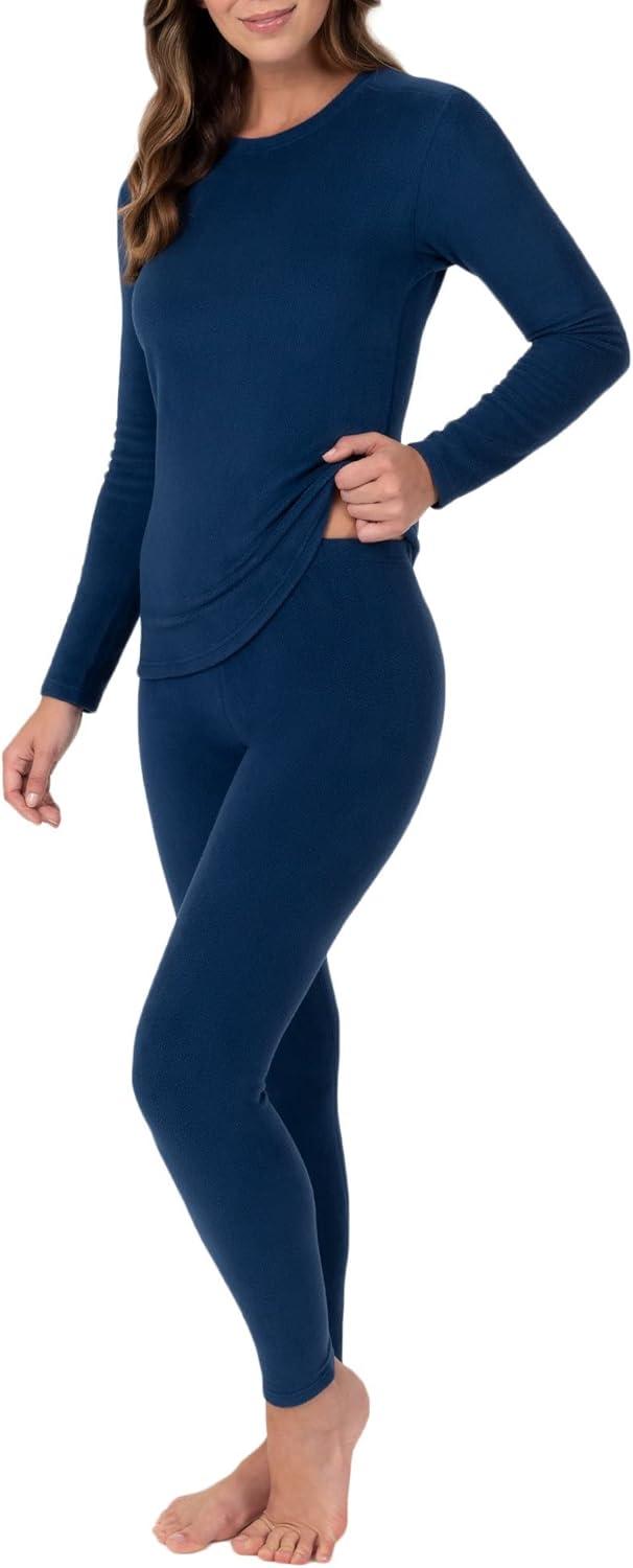 Fruit of the Loom womens Stretch Fleece Lined Thermal Long Johns Underwear Set(Indigo Blue)