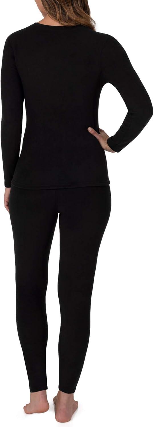 Fruit of the Loom womens Stretch Fleece Lined Thermal Long Johns Underwear Set(Pitch Black)
