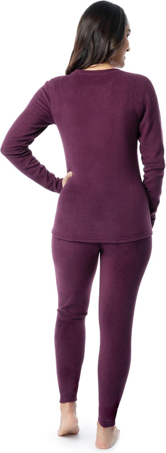Fruit of the Loom womens Stretch Fleece Lined Thermal Long Johns Underwear Set(Plum)