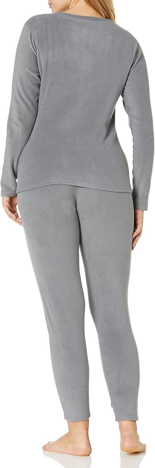 Fruit of the Loom womens Stretch Fleece Lined Thermal Long Johns Underwear Set(Grey)