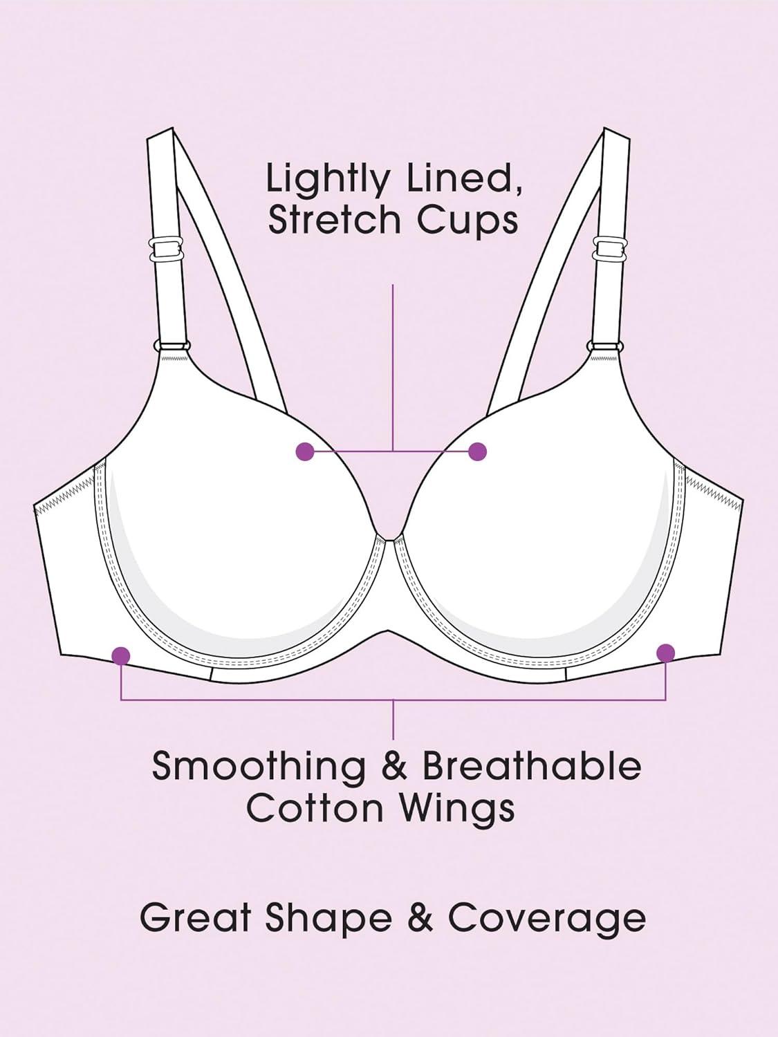 Fit For Me By Fruit of the Loom Women’s Plus Size Cotton Unlined Underwire Bra-Pinch-Free Straps – Side and Back Smoothing(Pristine)